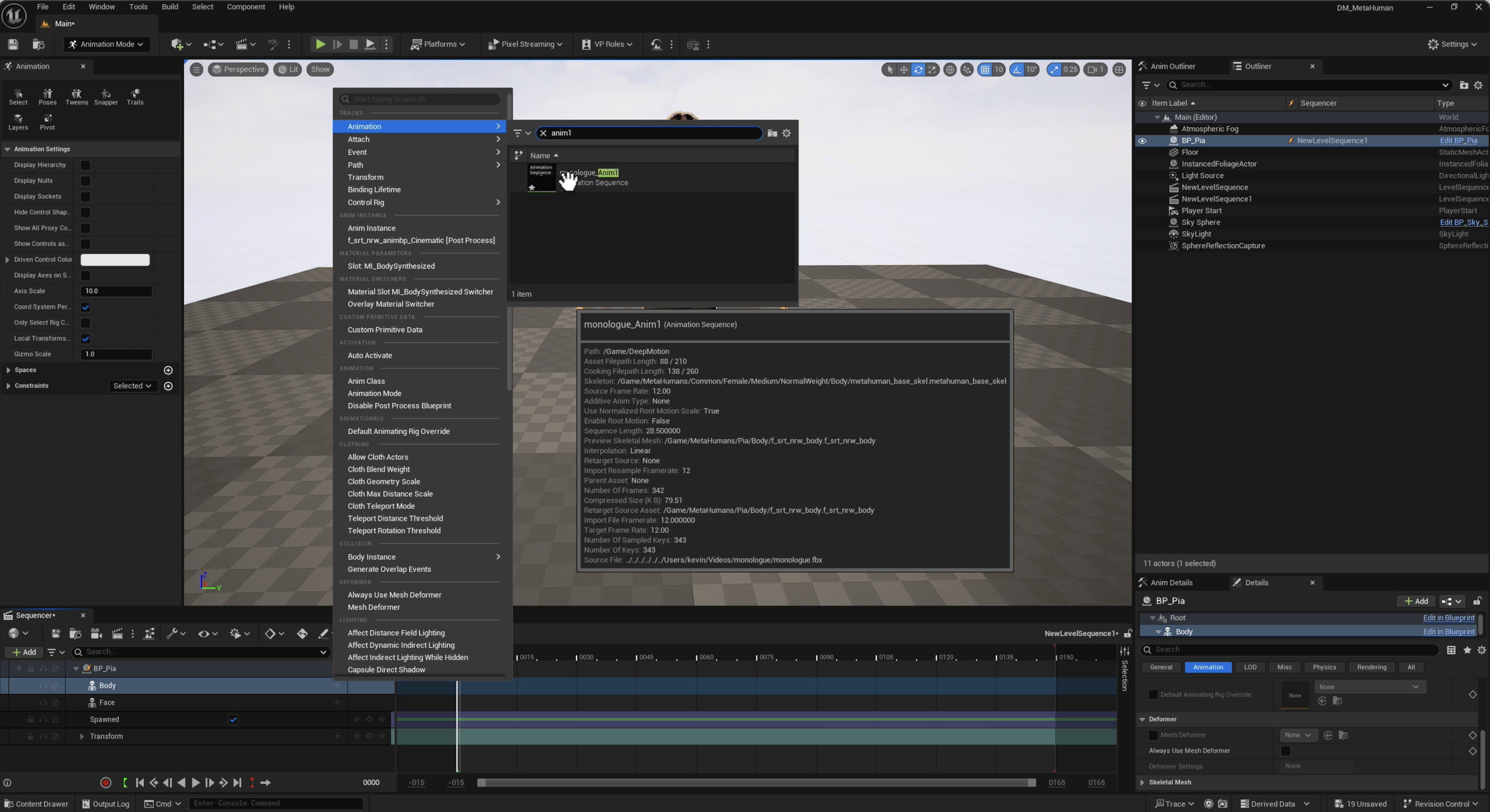 Attach Animation to MetaHuman